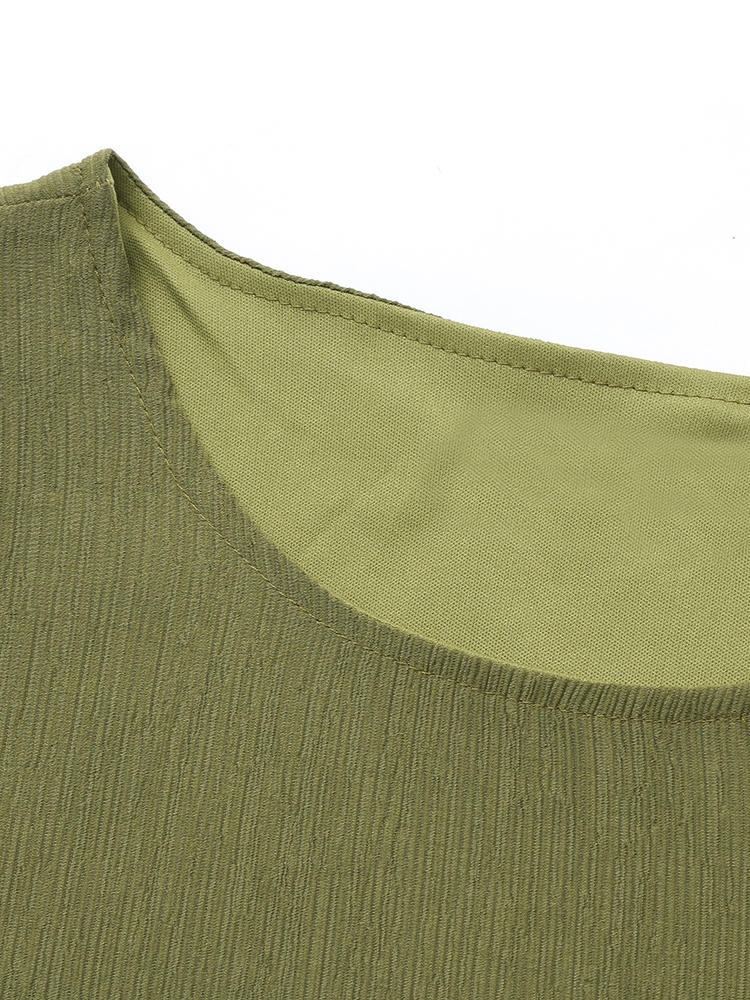 Casual Women Lantern Sleeve O-Neck Pure Color Pleated Dress