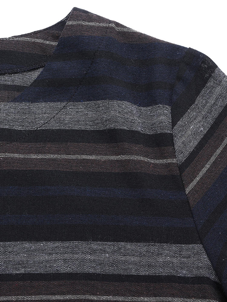 Casual Women Long Sleeve Striped O-Neck Losse Jurk Met Zak