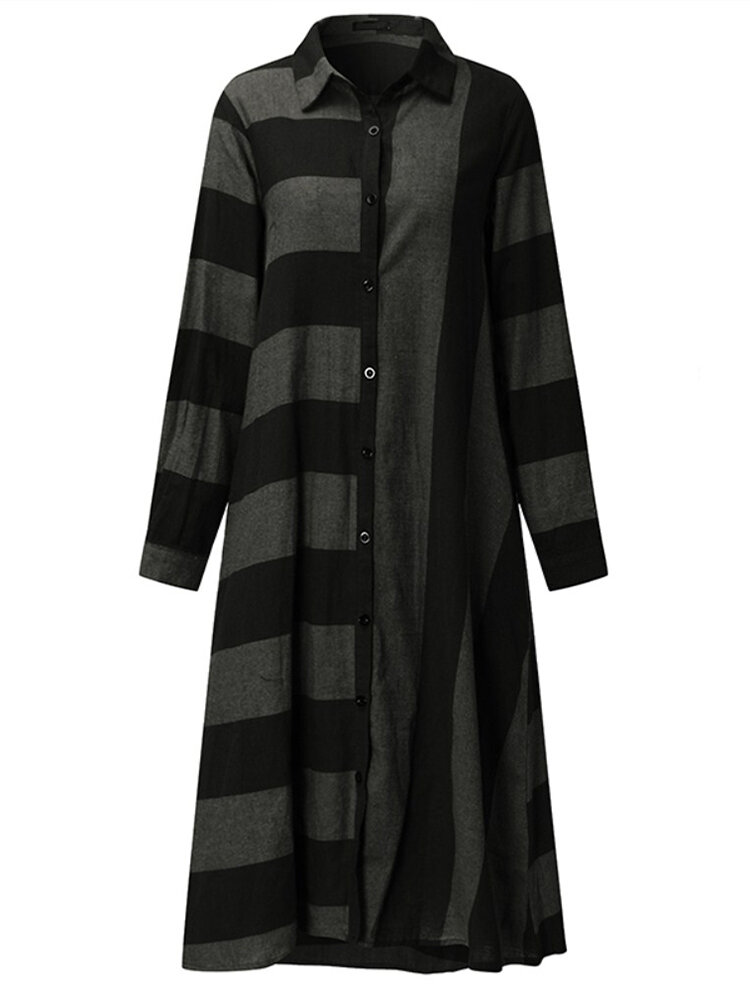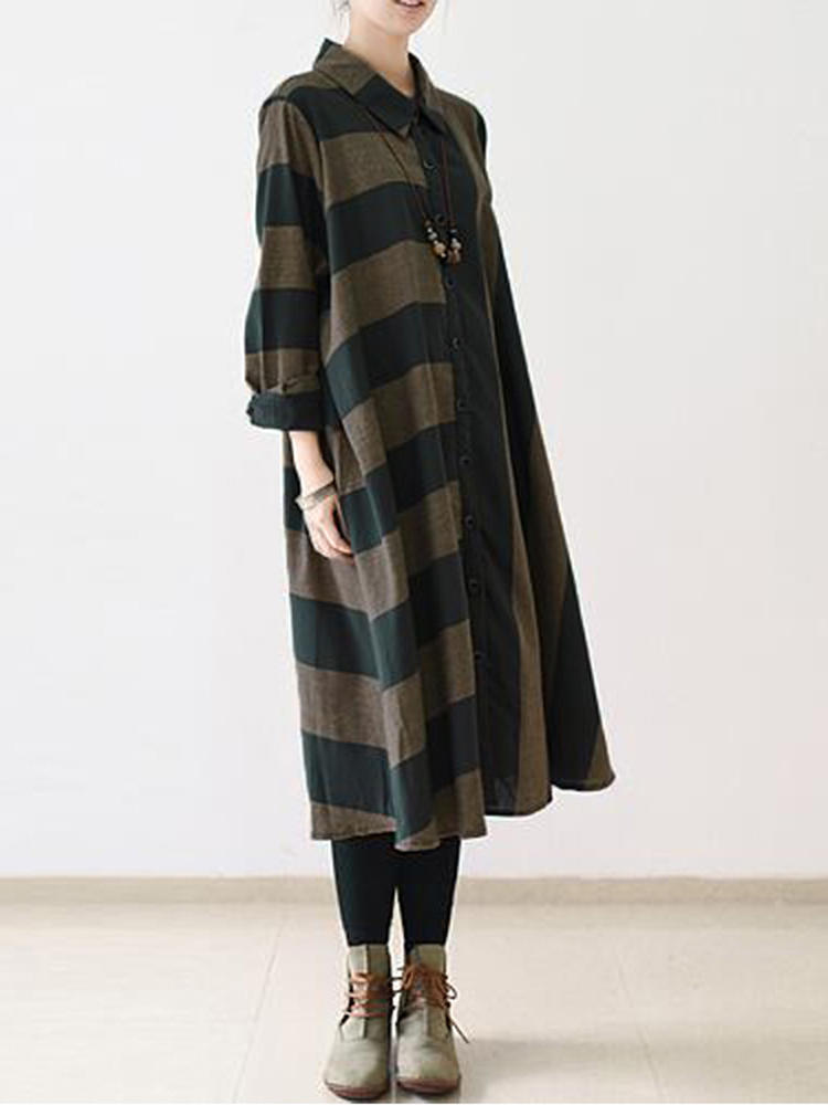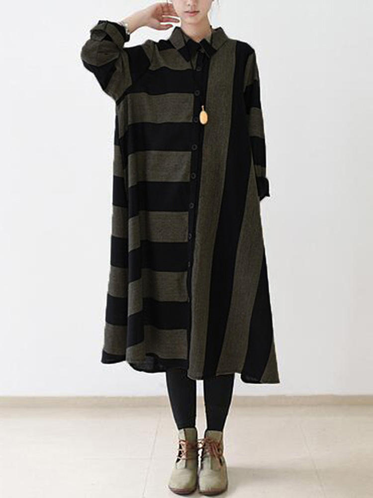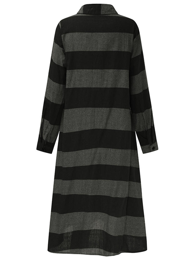 Casual Women Long Sleeve Striped Turndown Collar Shirt Jurk COD
