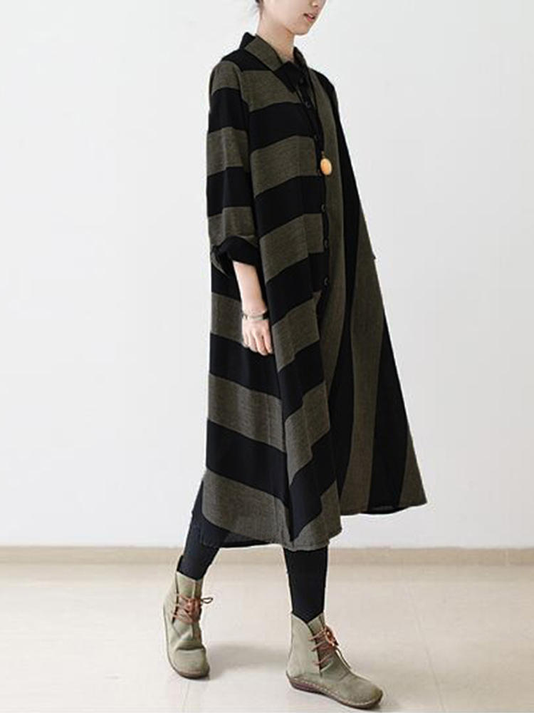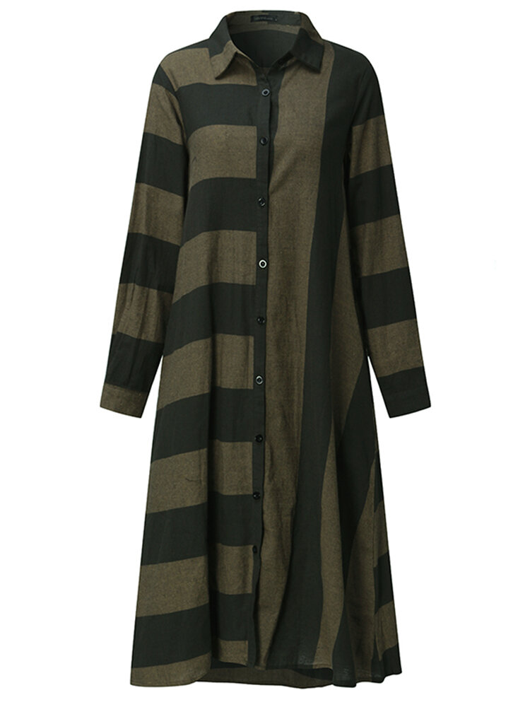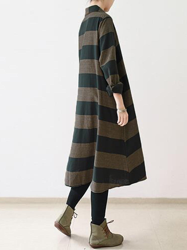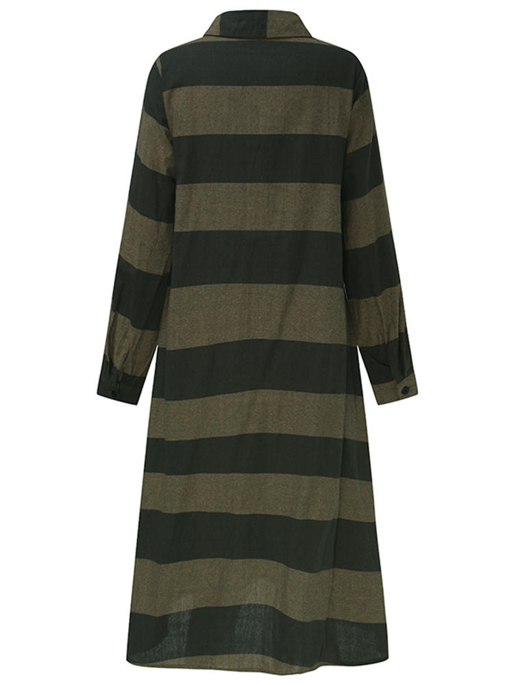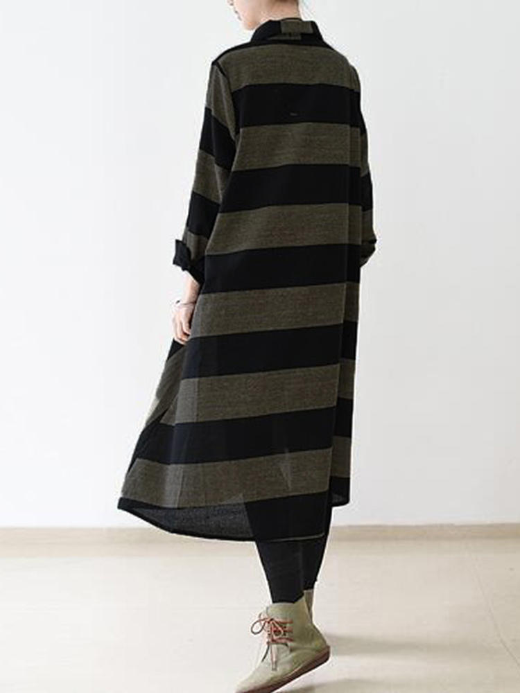 • Casual Women Long Sleeve Striped Turndown Collar Shirt Jurk
