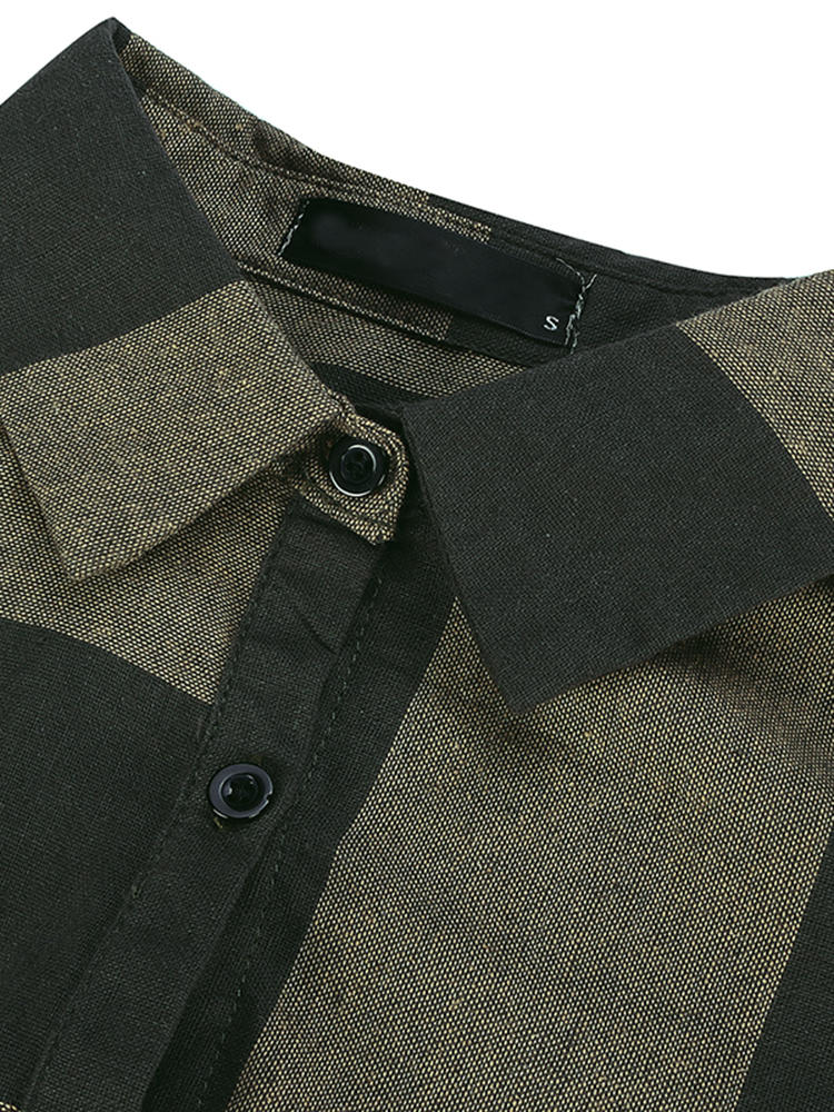 Casual Women Long Sleeve Striped Turndown Collar Shirt Jurk