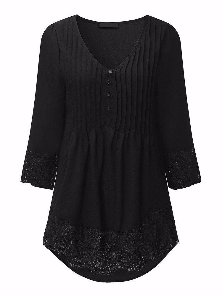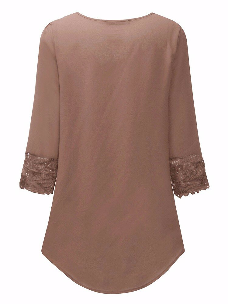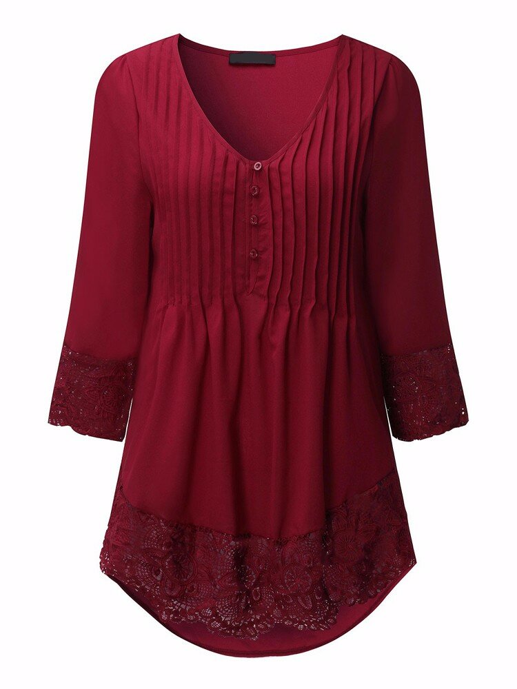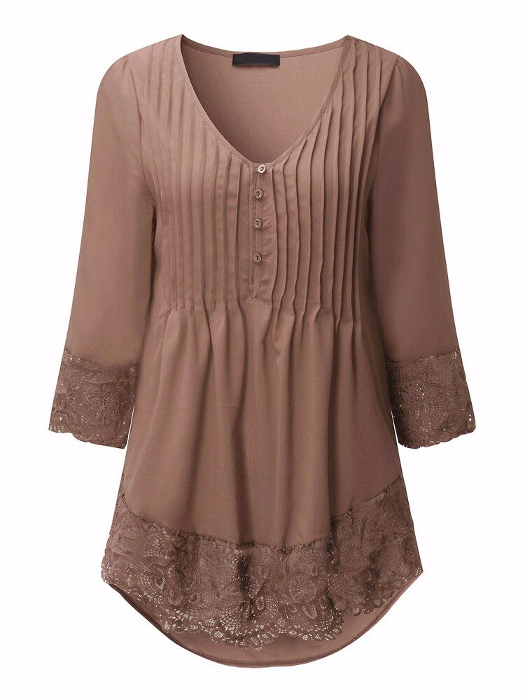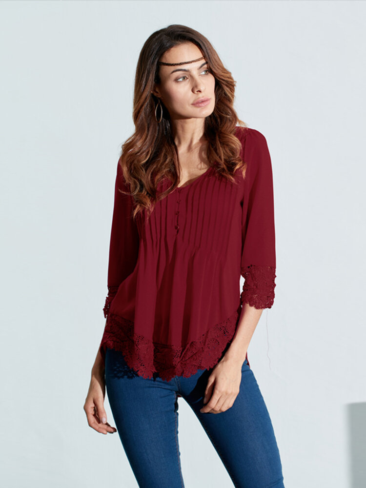 Geplooide kanten patchwork driekwart mouwblouse COD