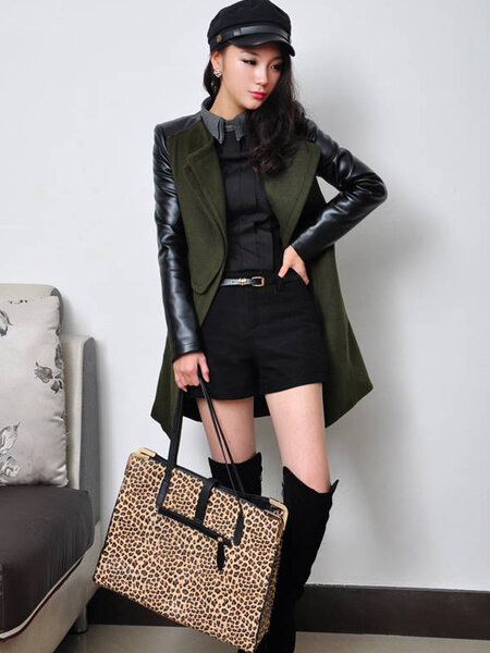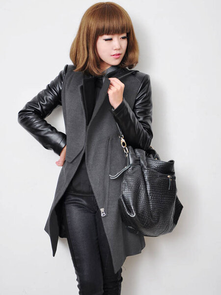 • Europese Zipper Spell Leatheroid met lange mouwen Dikke Jassen