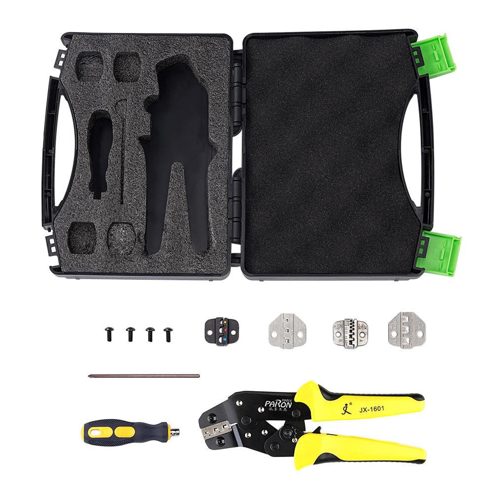 2.Professional Ratchet Crimping Tool Kit, Met 5 stuks JX-1601 sterft (JX-1601-01, JX-1601-06, JX-1601-08,JX-1601-1610,JX-1601-2546) en schroevendraaier, Dies verandert snel en gemakkelijk met een schroevendraaier.