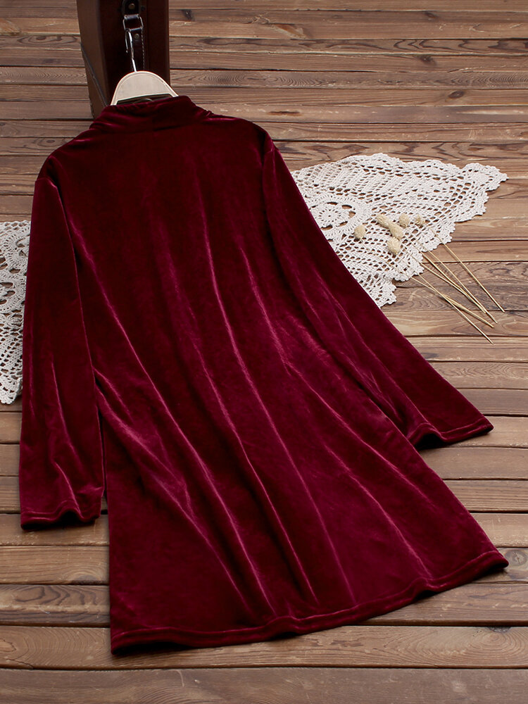 • Zuivere kleur Turn-down kraag Fluwelen trenchcoats met lange mouwen