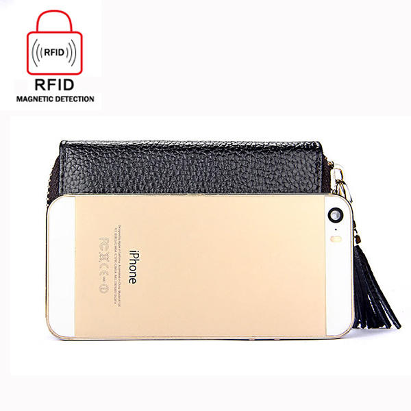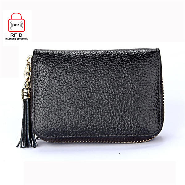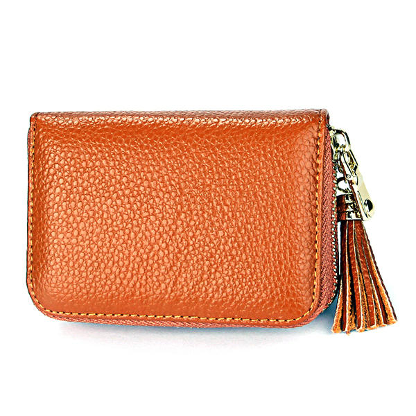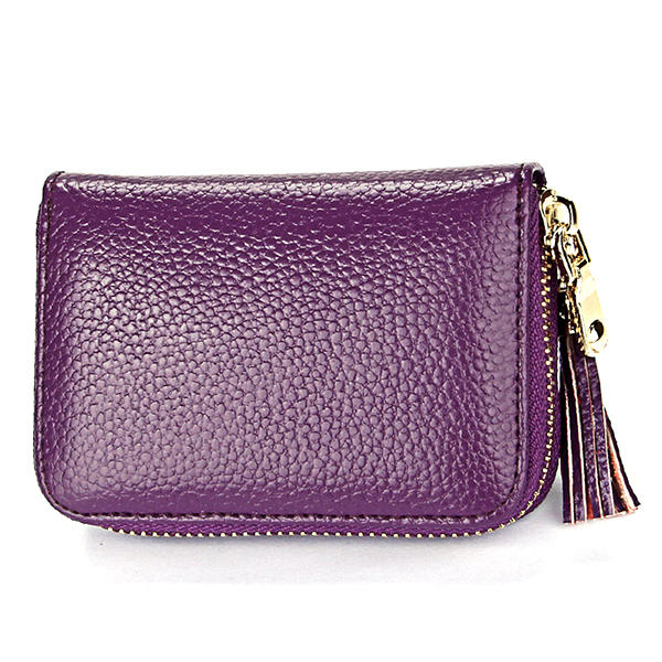 RFID Antimagnetische Echte Leer 15 Kaart Slots Multi-Slots Tassel Kaarthouder Muntstukken Tas