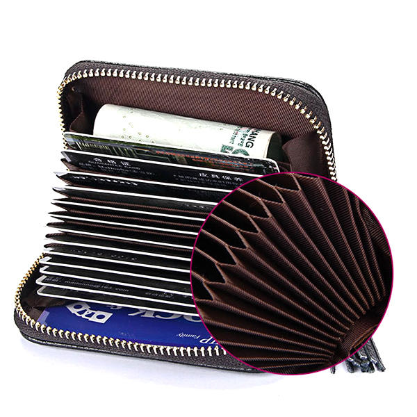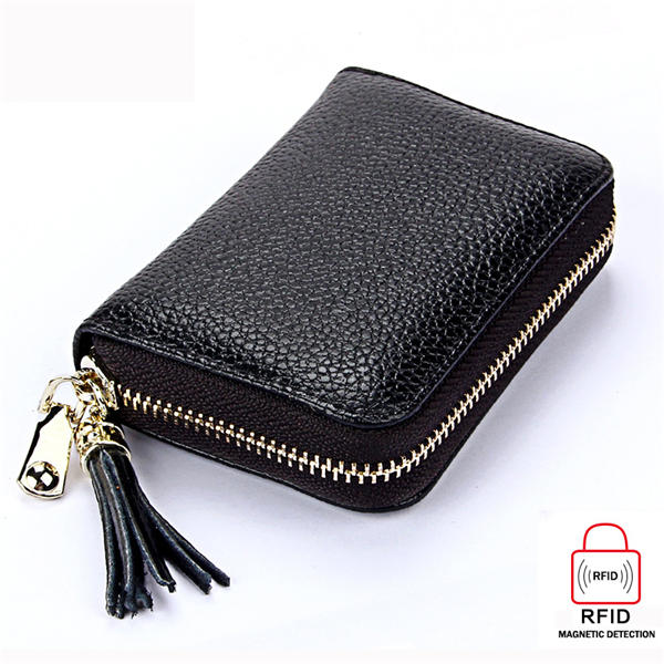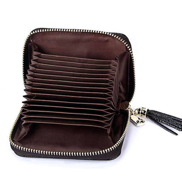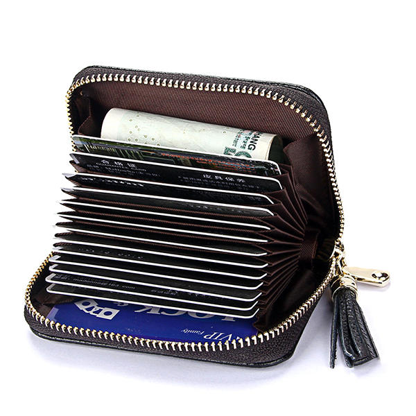 • RFID Antimagnetische Echte Leer 15 Kaart Slots Multi-Slots Tassel Kaarthouder Muntstukken Tas