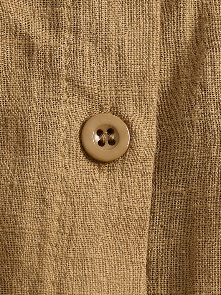 S-5XL lange dames-asymmetrische vintage blouse met lange mouwen en knopen