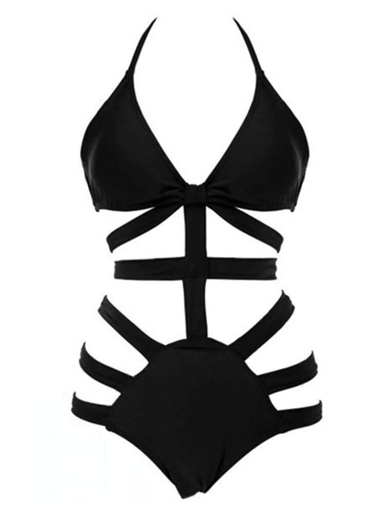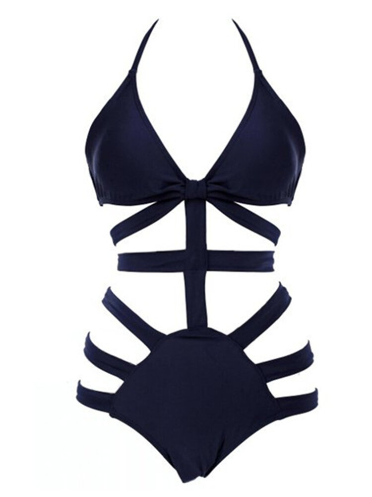 Sexy halternek zwart blauw uitgesneden bandage One stuk Monokini zwemkleding COD