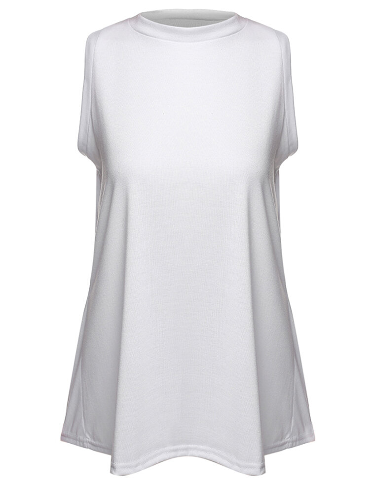 • Sexy Vrouwen Mouwloos Massief Wit Back Split Katoen Vest Tank Top