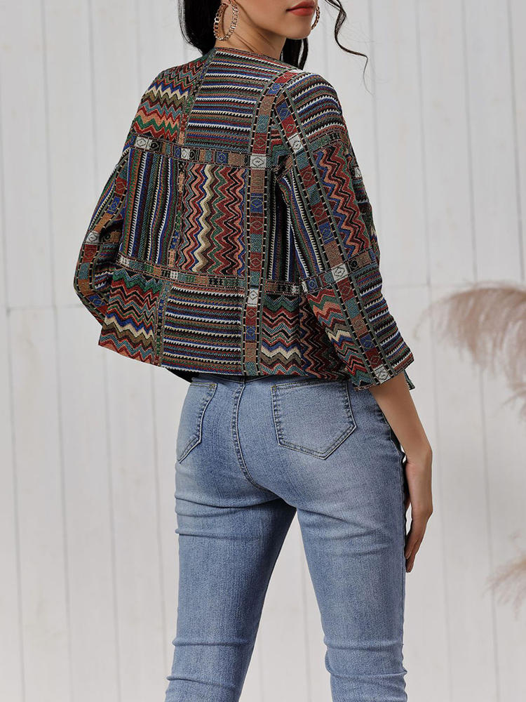 Vintage damesprint lange mouw jassen