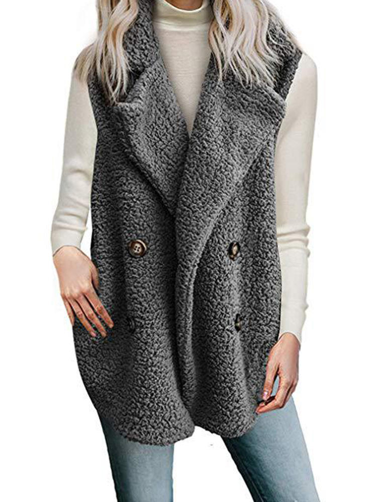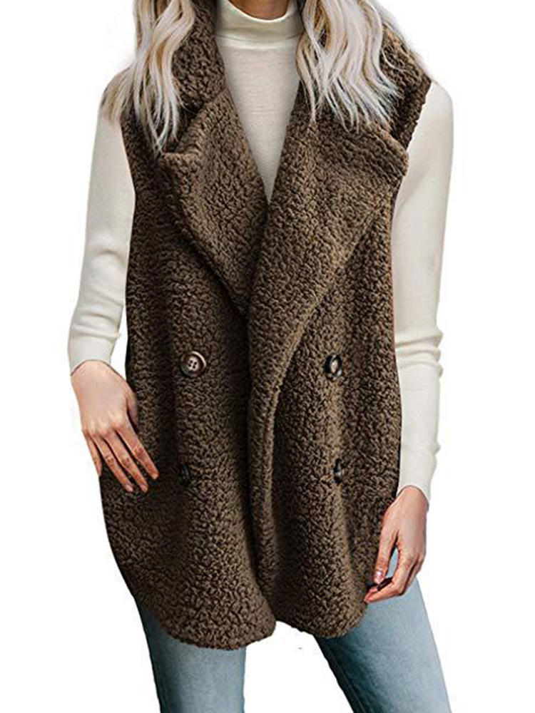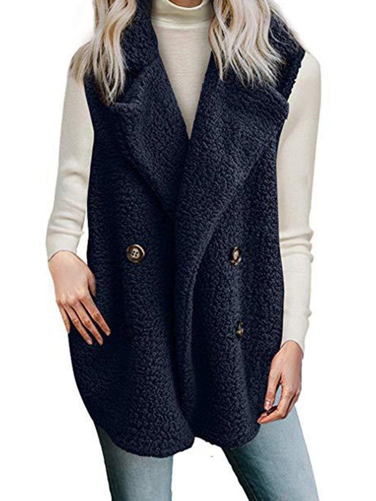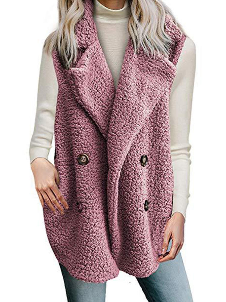 Dames Casual Herfst Winter Effen kleur Mouwloze vest met fleece knopen COD