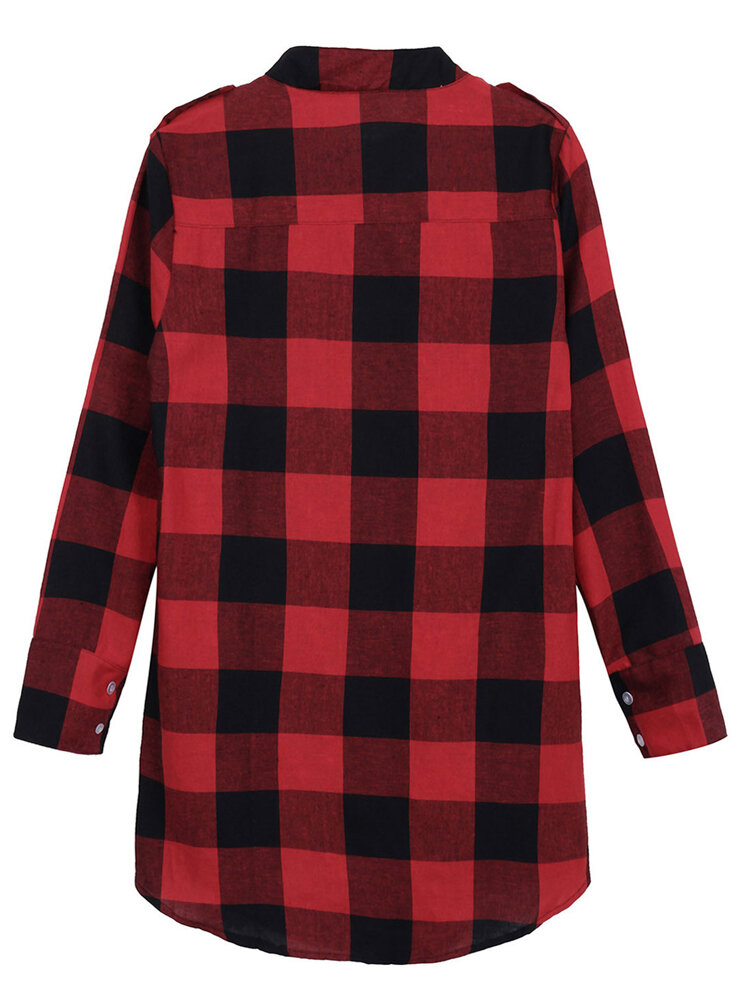 • Vrouwen Casual Long Sleeve Plaid Loose Pocket Button Lange Blouses
