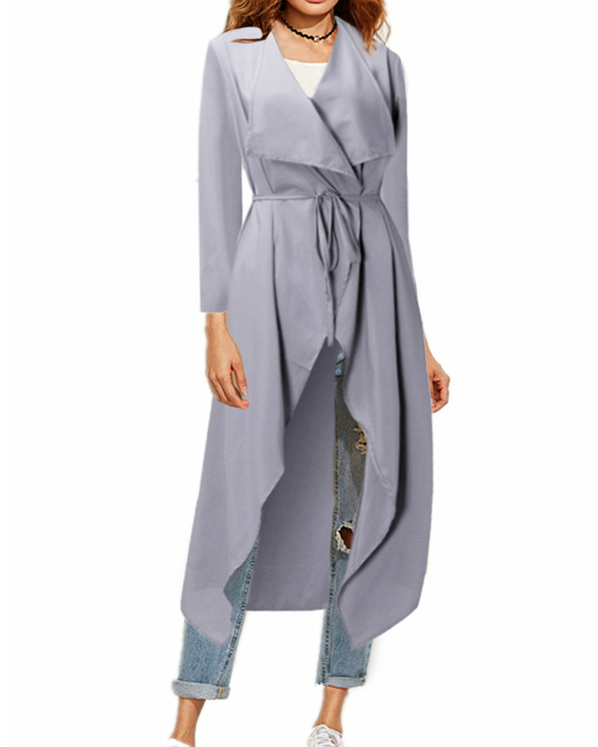 • Waterval vest met lange mouwen voor dames met riem