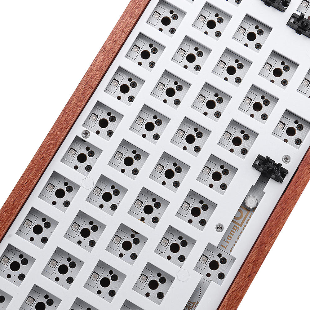 • [Wooden Case Version] Geek Aangepaste GK61 Hot-swappable 60% RGB-toetsenbord Aangepaste Kit PCB-montageplaat