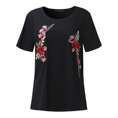 Women Short Sleeve Print Patchwork Loose Jurken