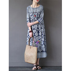 Folk Style Dames Random Midi Jurk Met Pocket